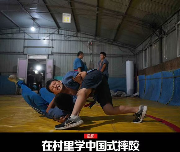 这是一年里为数不多的“中国式摔跤”比赛。中国式摔跤于1993年退出全运会,随即各省市陆续解散了该项目的摔跤队。2013年春,步入退休年纪的白鹤江决定免费教周边孩子练习中国式摔跤,开设了“直隶国术馆”,直隶是个退出历史的地名,就像中国式摔跤这项运动在全运会的消失。