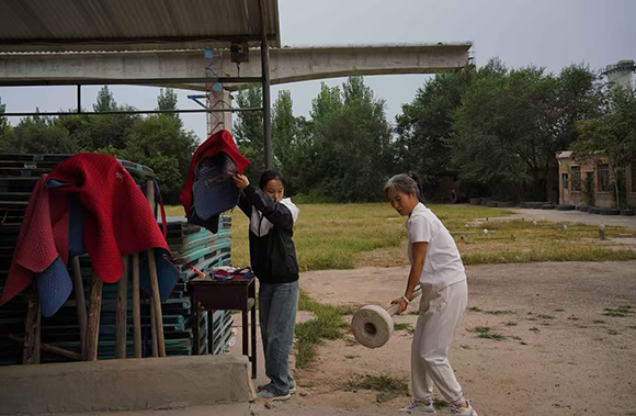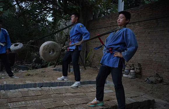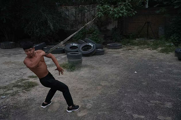 通往直隶国术馆的路尘土飞扬,保定南沟头村的尽头,由破旧厂房改造的跤馆掩映在荒草丛中,祖传的石锁、滑砖与水缸整齐排列,生锈的铁片和废弃轮胎散落四周。