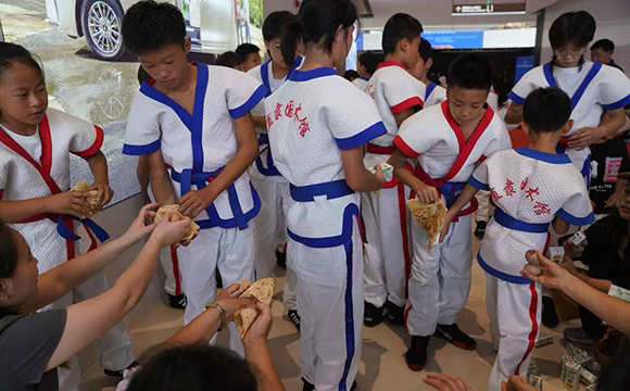 2025年保定奥运冠军之城杯中国式摔跤U系列比赛期间,家长为孩子分发简单午餐。